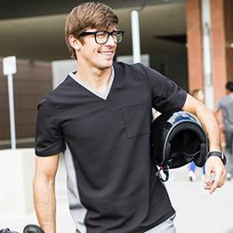 The Women’s “Better than Basic” V-neck shirt transforms a simple silhouette into sophisticated style. Made from our comfortable stretch woven fabric that moves with you and retains its shape. Figure enhancing darts lend a slim, tailored fit while keeping the top in place. Clean lines and contrast color trim create chic details that leave you feeling anything but basic.